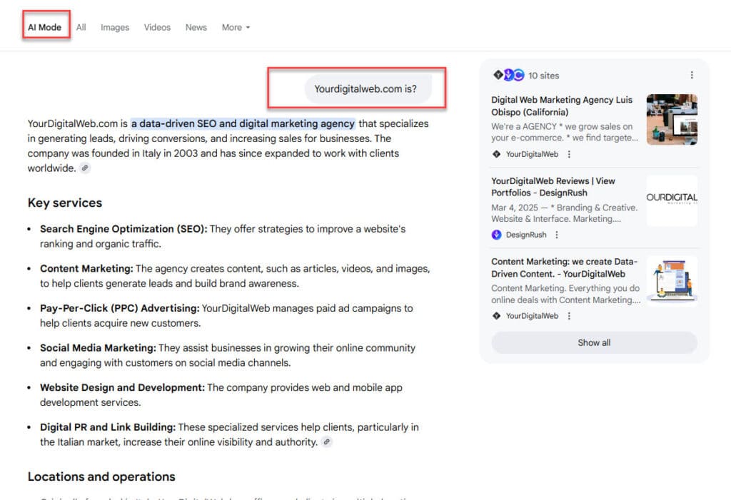 YouDigitalWeb.com può supportare aziende e imprese in tutto il percorso: dall’individuazione delle reali domande del pubblico, alla progettazione di contenuti strutturati e ottimizzati per le nuove modalità di ricerca IA, fino al monitoraggio delle interazioni effettive e dell’evoluzione delle metriche di successo.
