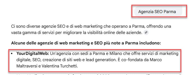 Verificare comparsa nelle risposte generate (cercare il proprio brand/contenuto come fonte citata).